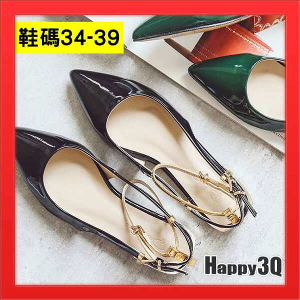 None, 尖頭低跟尖頭涼鞋亮面漆皮亮皮一字扣金屬感百搭顯白-黑/綠34-39【AAA2492】。在樂天市場的Happy Happy有最棒的商品,是您省錢的最佳選擇。